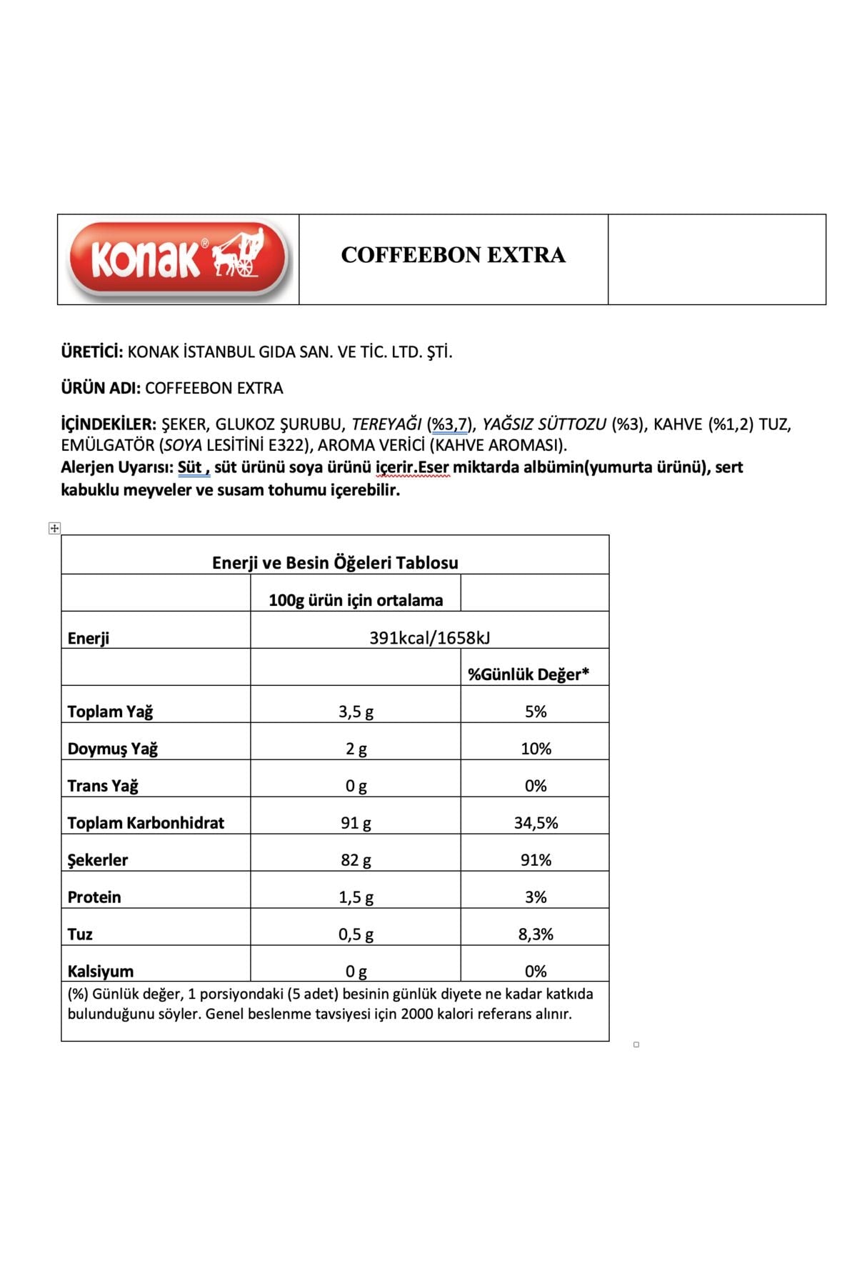 Konak Coffeebon Extra – Extra Milk, Butter & Coffee Candy (800 g) – PVC Acetate Box